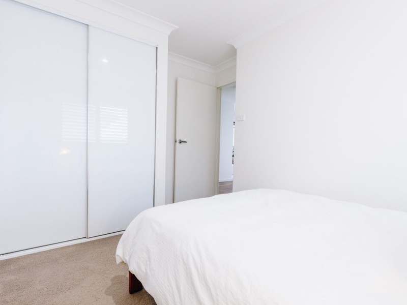 The unit also features air conditioning, making it comfortable all year round. Both bedrooms are generous in size and come with built-in robes. The stylish bathroom features a rain-head shower, adding a touch of luxury to your daily routine. Plantation shutters throughout the unit provide privacy and a stylish touch too. The private laundry is a fine size for additional storage use, and the single lock-up garage provides secure parking for your vehicle and some more storage.